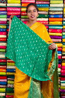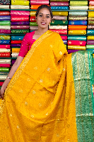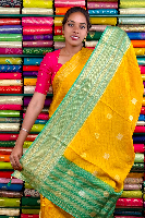 Vintage Mashru Silk Gold Zari Checks And Butti Yellow With Pista Green Saree