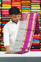 Vintage Pattu Kanchi Peacock Gap Border Ash With Pink Saree