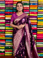 Visco Silk Floral Digital Print And Gold Butta Dark Wine With Deep Mauve Saree