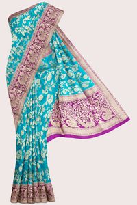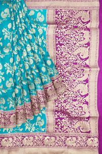 Visco Silks Full Jal Design Rama Green with Magenta Pink Saree