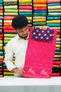 Viscose Georgette Meenakari Peacock Butti Bright Rani Pink With Purple Saree