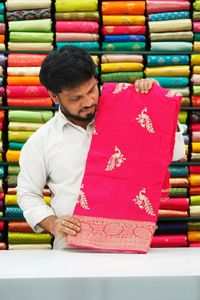 Viscose Silk Peacock Butti Zari Weaving Bright Pink Saree