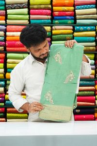 Viscose Silk Peacock Butti Zari Weaving Teal Green Saree