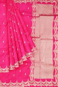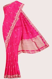 Viscose Silk Scollop Border Bright Pink Saree