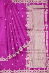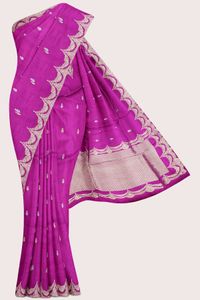 Viscose Silk Scollop Border Megentha Pink Saree